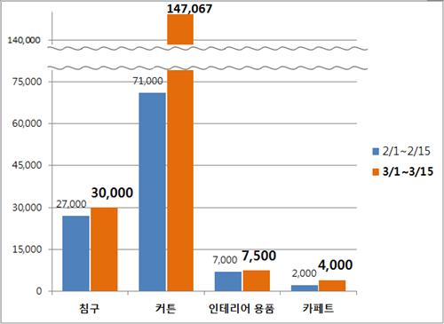 커튼이나 침구 같은 섬유 소재 상품의 경우 봄 상품이 겨울 상품보다 단가가 낮은 점을 고려하면 이 같은 상승세가 의미있는 결과라고 회사 측은 설명했다.