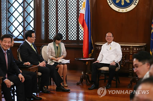 | △ 정 의장, 아키노 대통령 예방 (서울=연합뉴스) 필리핀을 방문 중인 정의화 국회의장이 16일 마닐라 대통령궁에서 아키노 대통령을 예방하고 있다. |
