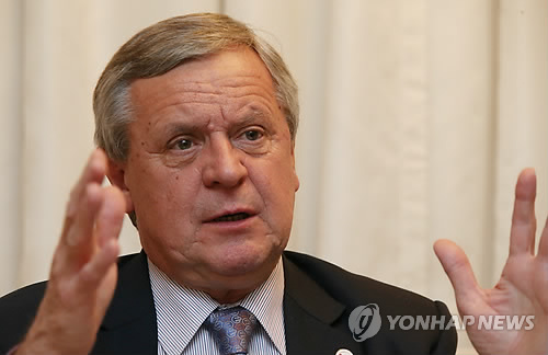 | △ 세계석유회의 요제프 토트 회장 인터뷰 (서울=연합뉴스) 서명곤 기자 = 18일 서울 강남구 삼성동 그랜드인터컨티넨탈호텔에서 요제프 토트 세계석유회의(WPC) 회장이 연합뉴스와 인터뷰를 갖고 유가 전망 등에 대한 질문에 답하고 있다. |
