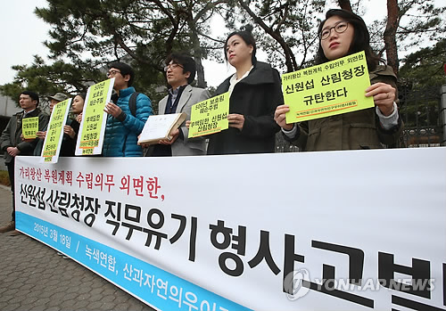 환경단체들, 산림청장 직무유기 혐의 검찰 고발(종합)