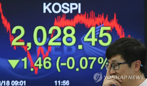 이날 코스피는 전날보다 1.46포인트(0.07%) 내린 2,028.45로 장을 마감했다.