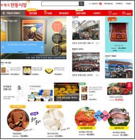 '우체국 전통시장'에서는 전국 88개 전통시장 147개 상점의 상품을 판매하며 우체국택배로 배달도 해준다.