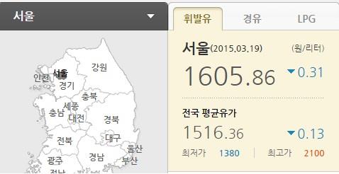 │ℓ당 휘발유│1천409.7원│ 1천516.3원│