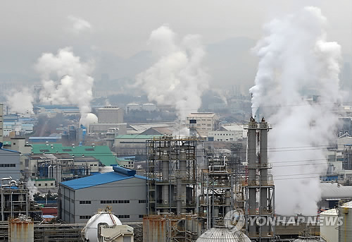 | △ 솟아오르는 울산 석유화학공단 수증기 (울산=연합뉴스) 김용태 기자 = 29일 오전 울산대교에서 바라본 울산 석유화학공단 공장에서 수증기가 올라오고 있다. 2015.1.29 yongtae@yna.co.kr |