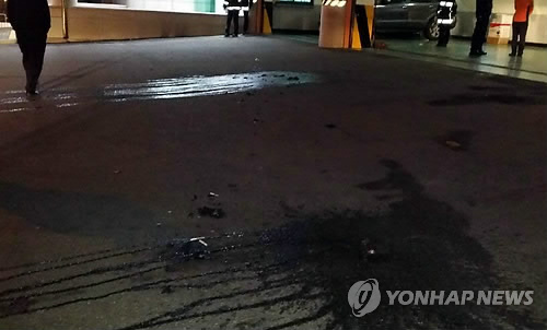| △ 소방서 앞 분신현장 (수원=연합뉴스) 19일 오전 6시 8분께 경기도 수원시 권선구 권선동 수원소방서 남부119센터 앞에서 이모(27)씨가 분신했다. 경찰과 소방당국에 따르면 이씨는 휘발유를 몸에 뿌리고 불을 붙였다가 119센터 당직자에게 발견돼 인근 병원으로 옮겨져 치료를 받고 있다. 이씨는 전신에 2도 화상을 입은 것으로 알려졌다. 사진은 분신한 현장. 2015.3.19 <<수원소방서>> you@yna.co.kr |
