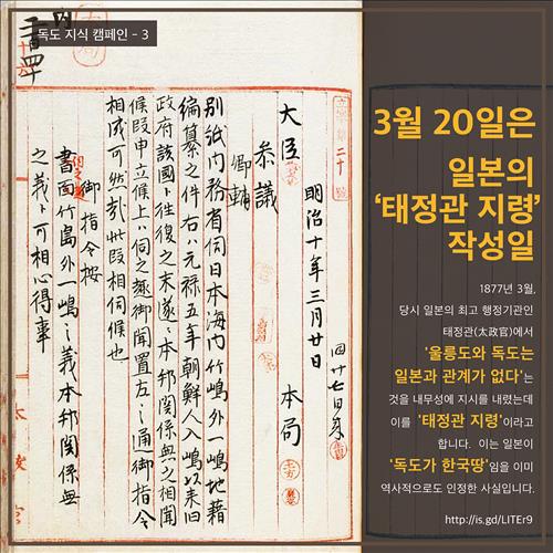 "138년 전 오늘은 독도가 한국 땅임을 일본이 밝힌 날"