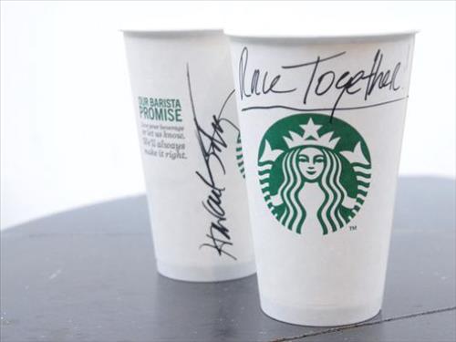 | △ 스타벅스가 인종차별 논란에 대한 사회적 대화를 유도하기 위해 이달 초부터 직원들에게 커피 컵에 '레이스 투게더'(Race Together)라는 문구를 적어 고객들에게 건네주기 시작했으나 긍정적 반응보다는 기회주의적이고 부적절하다는 반응이 대세를 이루자 22일(현지시간)부터 중단을 결정했다. |