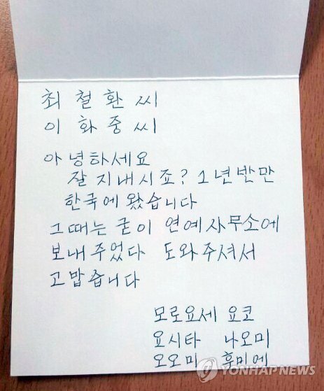 길 잃었던 日관광객들, 17개월만에 경찰찾아 감사편지