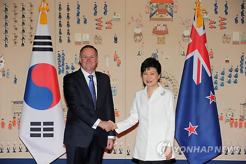 박 대통령은 이날 오전 청와대에서 한국을 공식 방한한 존 필립 키 뉴질랜드 총리와의 정상회담에서 모두발언을 통해 "FTA 정식 서명으로 양국 관계는 경제분야는 물론이고 문화, 인적교류, 안보, 국제협력 이런 다방면에서 한차원 더 높은 협력을 해나갈 수 있는 중요한 토대를 마련했다"며 이같이 밝혔다.