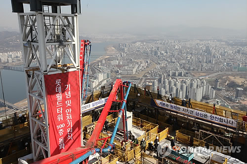 롯데그룹은 올해 말께 123층, 555m에 이르는 롯데월드타워 외관 공사를 마무리하고 이후 1년 동안 내부 인테리어 공사를 거쳐 2016년 말 완공할 계획이다.