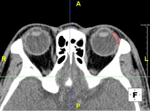 | △ 전산화 단층촬영으로 본 눈물샘의 모습. 빨간색 부분이 눈물샘이다. |