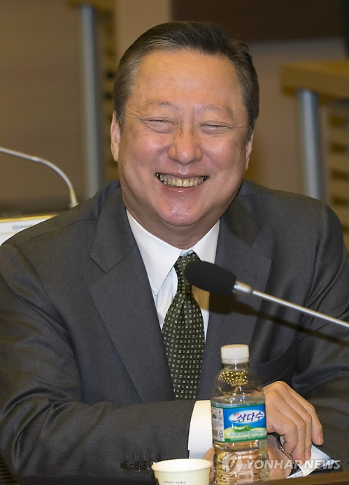 | △ 활짝 웃는 박용만 회장 (서울=연합뉴스) 윤동진 기자 = 제22대 대한상공회의소 회장으로 선출된 박용만 두산회장이 25일 오전 서울 중구 대한상공회의소에서 열린 대한상의 제22대 임시의원총회에서 취재진을 향해 활짝 웃어보이고 있다. 이날 박 회장은 수락 인사말로 "상공인들의 뜻을 겸허히 받아들여 주어진 소명에 최선을 다하겠다."고 말했다. |
