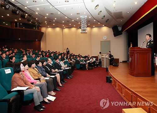 | △ '우월적 지위를 이용한 성범죄 근절' 심포지엄 (서울=연합뉴스) 강신명 경찰청장이 25일 서울 여의도 국회도서관 대강당에서 열린 '우월적 지위를 이용한 성범죄 근절' 정책 심포지엄에 참석, 인사말을 하고 있다. (경찰청 제공) |