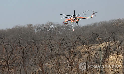 헬기는 남과 북을 가르는 임진강에서 물을 퍼다가 진화 작전을 펼쳤다.