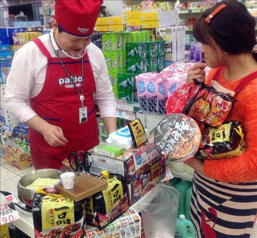 일반적으로 식품업계 시식행사는 여성판매원이 담당하지만, 팔도의 경우 남자 영업사원이 직접 라면 등을 만들어 시식을 권해 주목 받고 있다.