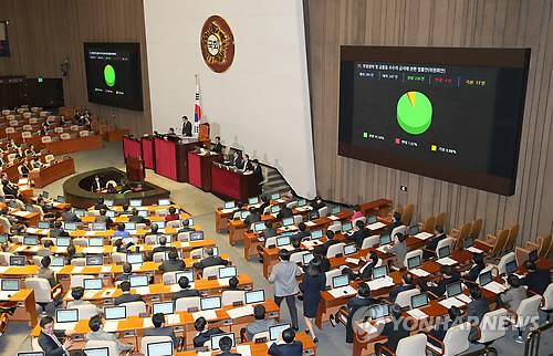 | △ 지난 3일 국회 본회의에서 '김영란법'으로 불리는 부정청탁·금품수수금지법 제정안이 통과되고 있다. |