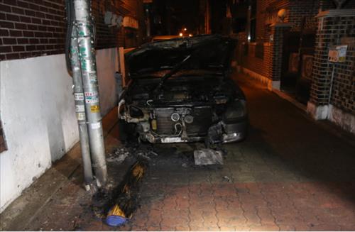 정씨가 불을 질러 전소된 차량. 서울 도봉경찰서 제공