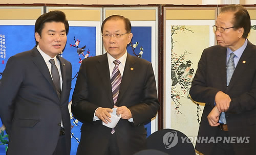 (서울=연합뉴스) 김연정 류미나 기자 = 정부와 새누리당은 27일 오전 국회에서 당정협의를 열고 4월 임시국회에서 사립대 퇴출방안을 담은 대학구조개혁법 제정안의 처리를 추진하기로 했다.