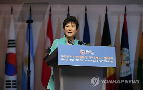 박 대통령은 이날 오후 부산 벡스코에서 열린 '2015년 미주개발은행(IDB) 및 미주투자공사(IIC) 연차총회' 개회식에 참석, 축사를 통해 "사람과 물건, 자본이 자유롭게 교류하는 '공동시장 구축의 파트너십'을 제안한다"며 이같이 말했다.