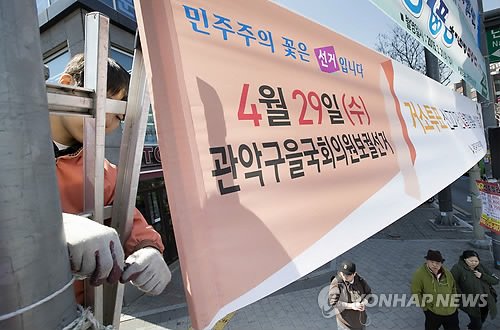 (서울=연합뉴스) 송수경 이귀원 기자 = 서울 관악을과 경기 성남 중원, 인천 서구·강화을, 광주 서구을 4곳에서 치러지는 4·29 재보선이 29일로 꼭 한 달 앞으로 다가왔다.