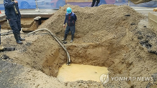 지하 상수도관 누수로 흙 쓸려나가