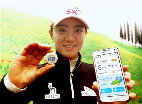 (서울=연합뉴스) 전성훈 기자 = SK텔레콤[017670]은 스마트폰과 연동해 골프 그린까지의 거리와 그린 경사도 등을 측정할 수 있는 골프 앱세서리 '스마트골프'를 선보였다고 29일 밝혔다.