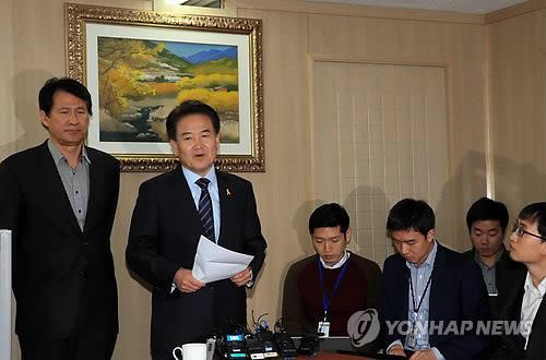 | △ 정동영 전 의원, 4·29 재보선 출마 (서울=연합뉴스) 홍해인 기자 = 국민모임의 정동영 전 의원(왼쪽 둘째)이 30일 오전 서울 여의도 자신의 사무실에서 가진 4ㆍ29 재보선 출마 기자회견에 참석해 발언하고 있다. |