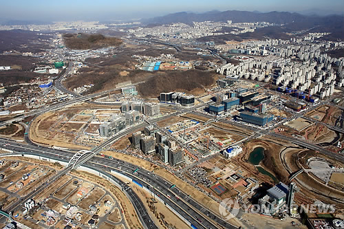 | △ 정부, 판교테크노밸리 인근 첨단산업단지 구축 (서울=연합뉴스) 정부가 판교테크노밸리 인근에 첨단산업단지를 구축한다. 기획재정부와 국토교통부, 문화체육관광부, 금융위원회, 관세청, 중소기업청 등 관계 부처는 이런 내용을 담은 '관광인프라 및 기업혁신투자 중심의 투자활성화 대책'을 18일 발표했다. 사진은 판교테크노밸리와 첨단산업 단지가 들어설 부지의 모습. 2015.1.18 photo@yna.co.kr |