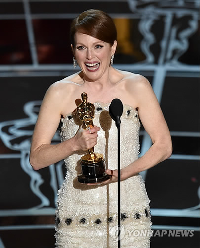 줄리안 무어는 '스틸 앨리스'에서 알츠하이머에 걸려 자신이 사랑한 모든 것에 대한 기억을 조금씩 잃어가는 여교수 '앨리스' 역을 열연해 지난 2월 생애 첫 오스카 트로피를 거머쥐었다.