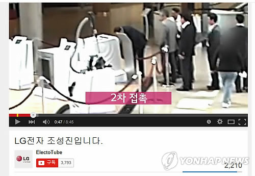 | △ 지난해 독일 가전전시회 IFA에서 삼성전자의 세탁기를 고의 파손한 혐의로 재판에 넘겨진 LG전자 홈어플라이언스(H&A) 사업본부장 조성진 사장이 유튜브에 공개한 당시 상황을 담은 CCTV 영상 (유튜브 캡처) |