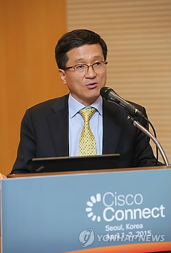 | △ 정경원 시스코코리아 사장이 2015 시스코커넥트 기자간담회에서 만물인터넷 투자에 관한 시스코 향후 계획에 대해 설명하고 있다. (시스코코리아 제공) 인물 |