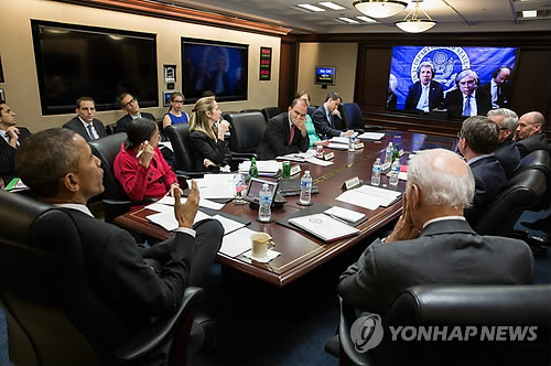 | △ 이란 핵협상 진행상황 보고받는 오바마 대통령 (EPA=연합뉴스 자료사진) |