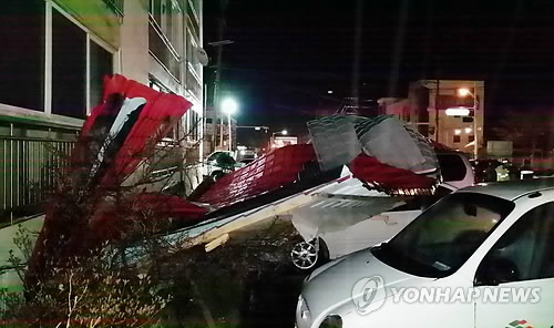 태백 아파트서 함석지붕 강풍에 날아가 차량 8대 파손