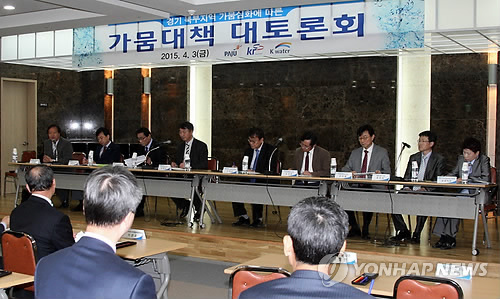 | △ 경기북부 가뭄 대책 토론회 (파주=연합뉴스) 우영식 기자 = 3일 오전 경기도 파주시 운정행복센터에서 파주시와 한국수자원공사, 한국농어촌공사 등 3개 기관 주최로 임진강 유역 가뭄 대책을 마련하기 위한 토론회가 열리고 있다. 패널로 나선 전문가들은 한탄강댐에 담수기능을 갖출 것과 임진강의 효율적 관리를 위한 남북간 협력 등을 제안했다. 2015.4.3 wyshik@yna.co.kr |