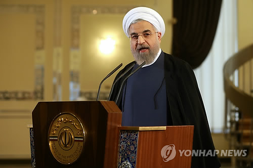 | △ (AP=연합뉴스) 하산 로하니 이란 대통령이 3일(현지시간) 테헤란의 사다바드궁에서 발언을 하고 있다. |