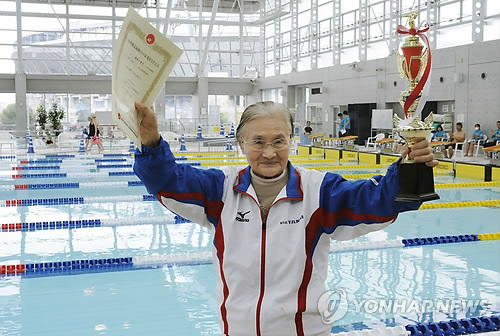 (도쿄=연합뉴스) 조준형 특파원 = 일본의 100세 할머니가 국내 수영대회에서 1천500m를 완영했다고 니혼게이자이신문(닛케이)이 5일 보도했다.