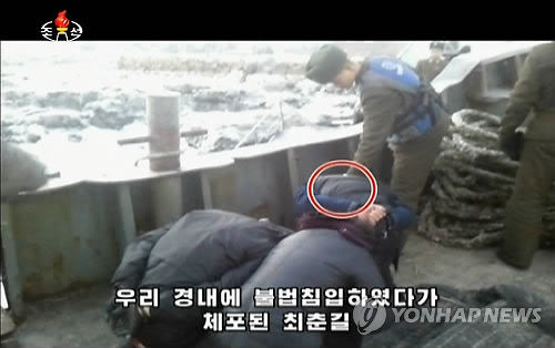 | △ 북한TV가 공개한 최춘길씨 체포 모습(연합뉴스 자료사진) |
