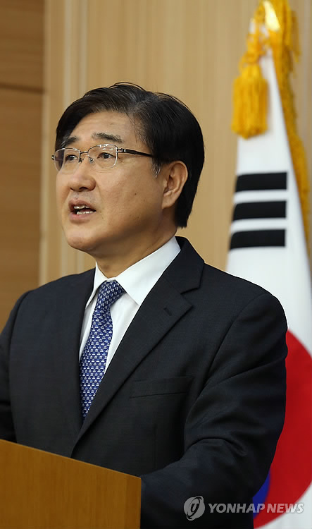 | △ 일본 독도 영유권 주장 교과서 검정 통과 규탄성명 발표 (서울=연합뉴스) 이지은 기자 = 노광일 외교부 대변인이 6일 오후 서울 종로구 도렴동 외교부 브리핑룸에서 일본의 독도에 대한 부당한 영유권 주장을 강화한 중학교 교과서 검정 통과에 관한 규탄 성명을 발표하고 있다. |