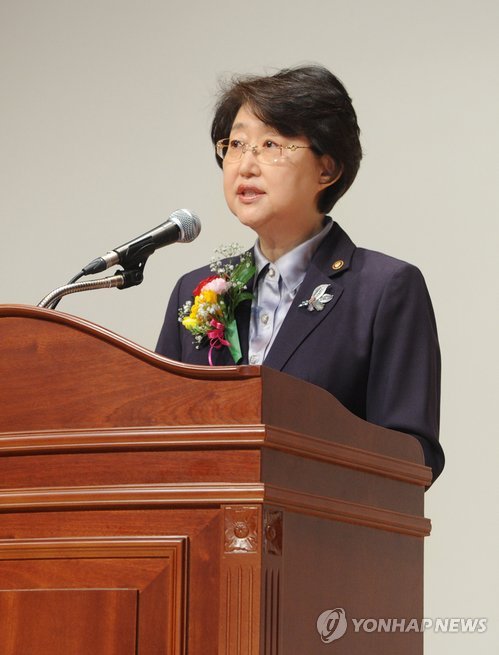 | △ 김승희 신임 식품의약품안전처장 (서울=연합뉴스) 김승희 신임 식품의약품안전처장이 8일 충북 오송 식약처에서 열린 취임식에서 취임사를 하고 있다. (식약처 제공) |