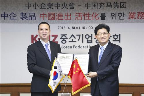 중기중앙회가 우수 중소기업제품을 발굴하고 중국 분마그룹은 한국상품 전시판매장 건립과 인증 획득, 통관 지원 등 중국 내 한국상품 판매를 지원하는 게 업무협정의 골자다.