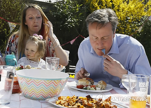 7일(현지시간) 영국 일간 데일리미러 등에 따르면 캐머런 총리는 지난 6일 영국 남부 풀의 한 유권자 가정에서 열린 가든 바비큐 파티에 참석했다.
