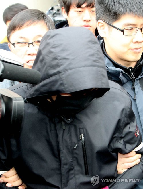 | △ 크림빵 뺑소니 피의자 검찰 송치 (청주=연합뉴스) 김형우 기자 = 3일 '크림빵 아빠' 뺑소니 사망사고 피의자 허모(37)씨가 검찰로 이송되고 있다. 청주흥덕경찰서는 이날 허씨를 특정범죄가중처벌법상 도주 차량과 도로교통법상 음주운전 혐의로 검찰에 송치했다. 2015.2.3 vodcast@yna.co.kr |