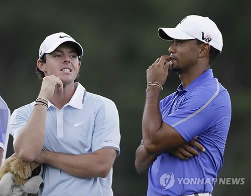 | △ 로리 매킬로이(왼쪽)와 타이거 우즈 (AP=연합뉴스) |