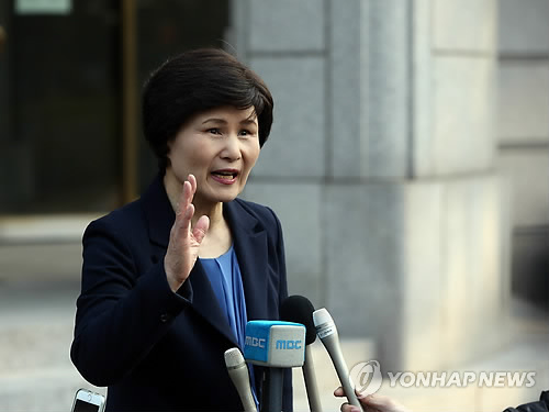| △ 질문받는 김강자 전 총경 (서울=연합뉴스) 박동주 기자 = 9일 오후 서울 헌법재판소에서 열린 '성매매알선 등 행위의 처벌에 관한 법률'(성매매 특별법) 관련 공개변론에 참석한 김강자 전 총경이 대심판정을 나서며 취재진의 질문을 받고 있다. |