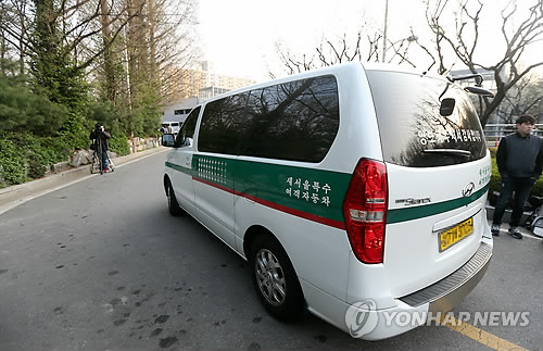 | △ 충남 서산으로 옮겨지는 성완종 전 회장 시신 (서울=연합뉴스) 신준희 기자 = 해외 자원개발 융자사기와 횡령혐의로 법원의 영장실질심사를 앞두고 스스로 목숨을 끊은 성완종 전 경남기업 회장의 시신을 실은 차량이 10일 오전 서울 일원동 삼성의료원 장례식장에서 빈소가 마련될 충남 서산으로 옮겨지고 있다. |