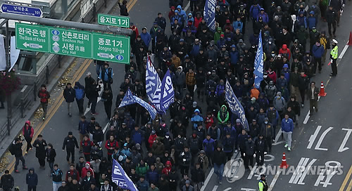 | △ 노동자 도심 거리 행진(연합뉴스 자료사진) |