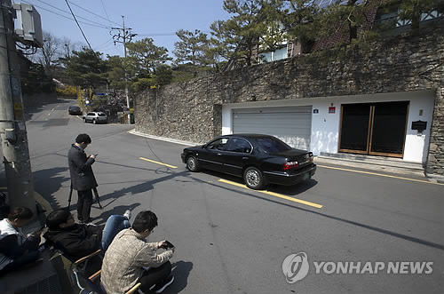| △ 김기춘 전 비서실장 집 앞 취재진 (서울=연합뉴스) 윤동진 기자 = 지난 9일 형제봉 매표소 부근에서 숨진 채 발견된 성완종 전 경남기업 회장이 정치권에 금품을 뿌린 정황을 적은 메모를 검찰이 확보한 것으로 알려진 가운데 10일 오후 서울 종로구 김기춘 전 비서실장 집 앞에 취재진이 모여있다. |
