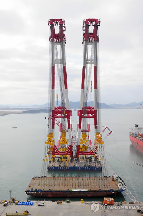 이에 따라 국내 최대 규모의 해상크레인인 현대중공업[009540]의 1만t급 'HYUNDAI-10000'호와 삼성중공업[010140]의 8천t급 '삼성 5호' 등 초대형 크레인 2대가 활용된다.