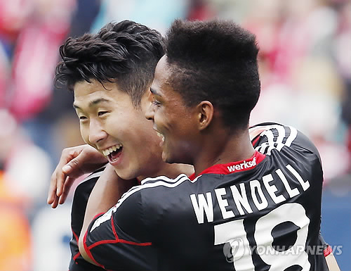손흥민은 12일(현지시간) 독일 마인츠의 코파스 아레나에서 열린 마인츠와의2014-2015 분데스리가 28라운드 원정 경기에서 전반 15분 선제골을 터뜨리면서 레버쿠젠의 3-2 승리를 견인했다.