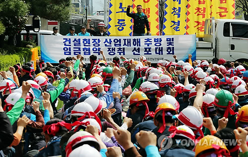 | △ 지난해 4월 광주·전남 건설노조 소속 조합원들의 집회(연합뉴스 자료사진) |